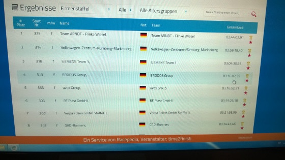 Die offizielle Endzeit betrug 03:16:07,39 und bedeutete damit einen sehr guten 4. Platz für uns!